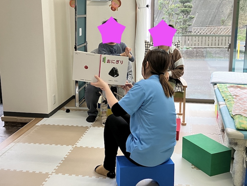 早速選んでもらった本を保育士に読み聞かせしてもらいました。単に読み聞かせではなく、一人ひとりが課題の姿勢(立位・座位)をとっています。意識が本に集中している環境で、どの様な姿勢の変化が見られるかや本への意識の集中度を観察しながら読み聞かせをしてもらいました。