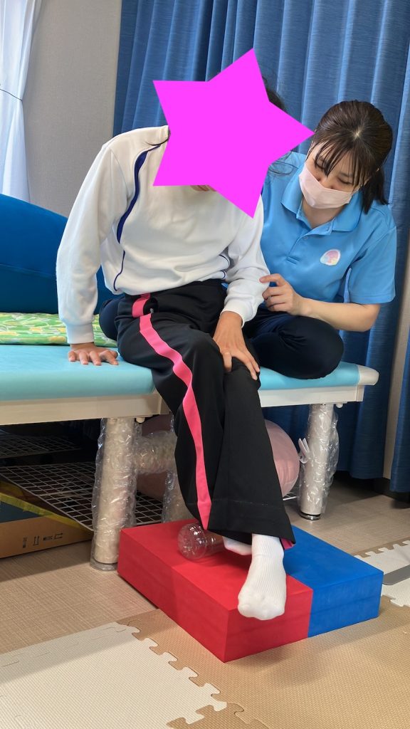 先日学校に巡回相談に行った際、座位でものを踏む運動を行っているという情報を先生から聞きました。ウェルスマイルでも導入してみました。足を床につける前段階として、足の裏を意識する目的で行っています。まだ試行段階ですが、何を踏むのが良いか試行錯誤しながら行っていきたいです。