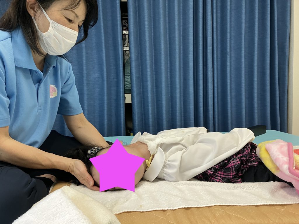 今日は15:30下校でしたので短期集中で療育を行いました。うつ伏せの時間を少し減らし、仰向けでの首のストレッチを入念に行いました。