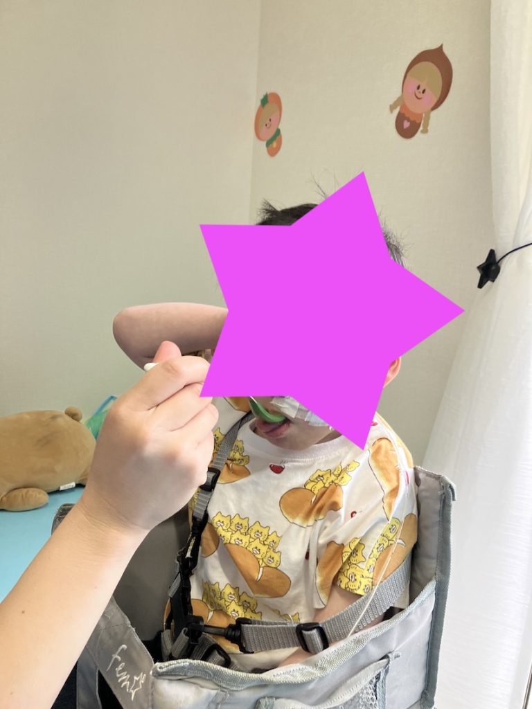 散策から帰ってきたところで遊びをしながら個別の支援を行いました。座る練習や食べる練習など個別に対応しました。