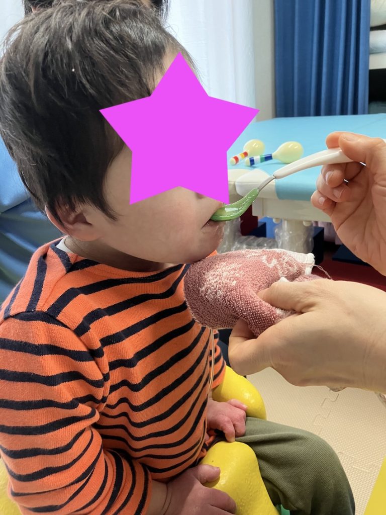 続いては一昨日言語聴覚士の先生に口の機能を評価して頂いたお子様です。先生の指導をウェルスマイルでも実際に行ってみました。