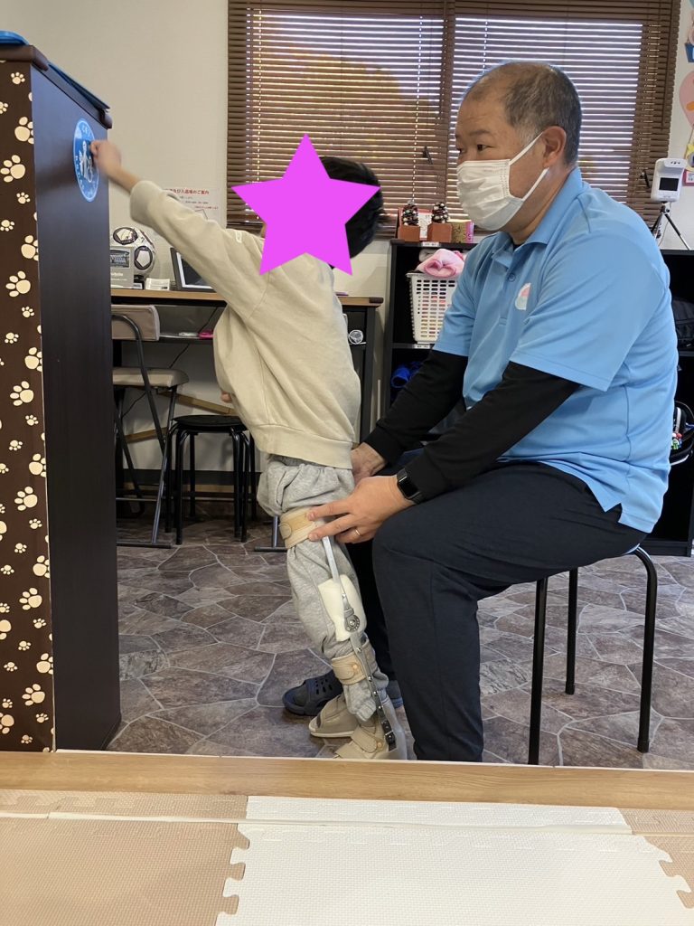 写真のお子様は病院でもリハビリを行なっています。病院の外来リハとウェルスマイルの療育が同じ目標で行うことができれば効果は倍増です。