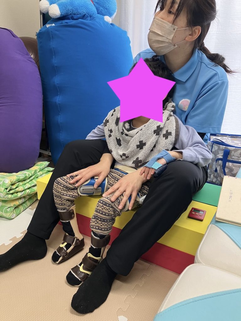 理学療法士と座位の練習をしています。うつ伏せを行った後に座位を行うと不随意運動が少ない印象があります。本日学校からの情報で緊張が高かったと申し送りがありましたが、ウェルスマイルではリラックスできていました。特に座位をとるとリラックスする傾向があります。放課後なので疲れていることも要因かもしれませんが、積極的に座位を行いたいと思います。