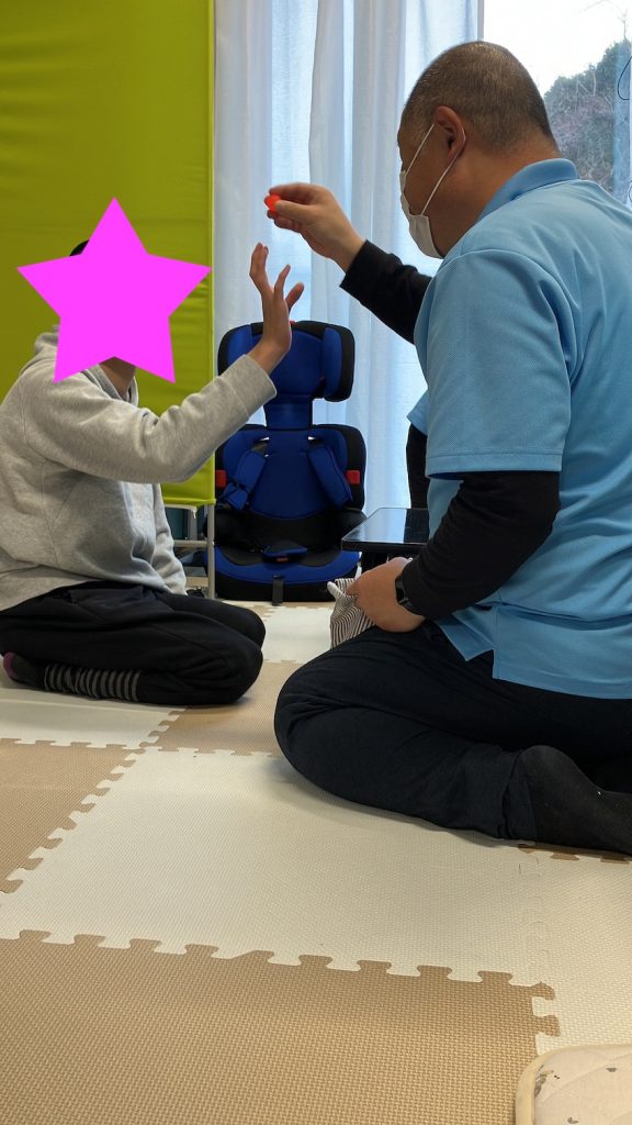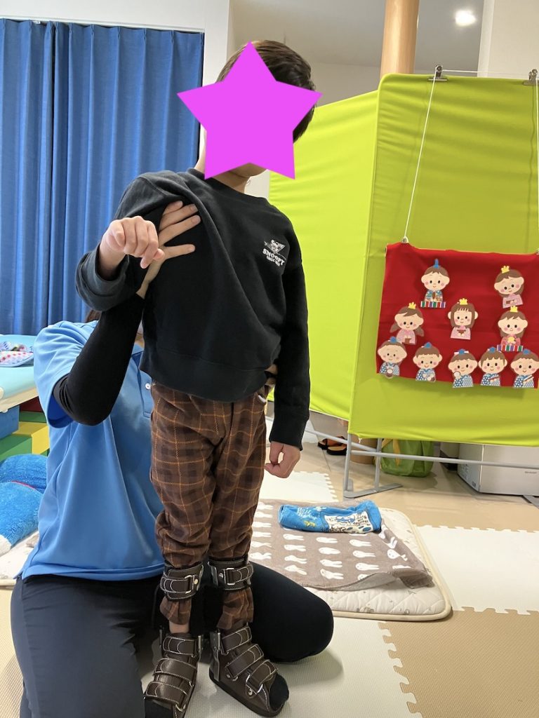 お花見から帰ってきて一休みしたところで、立つ練習やつまみの練習を行いました。ウェルスマイルの療育は多職種協働で行っています。遊びの中にリハビリテーションの要素を取り入れて、お子様に無理のない様に楽しみながら行うことに心掛けています。