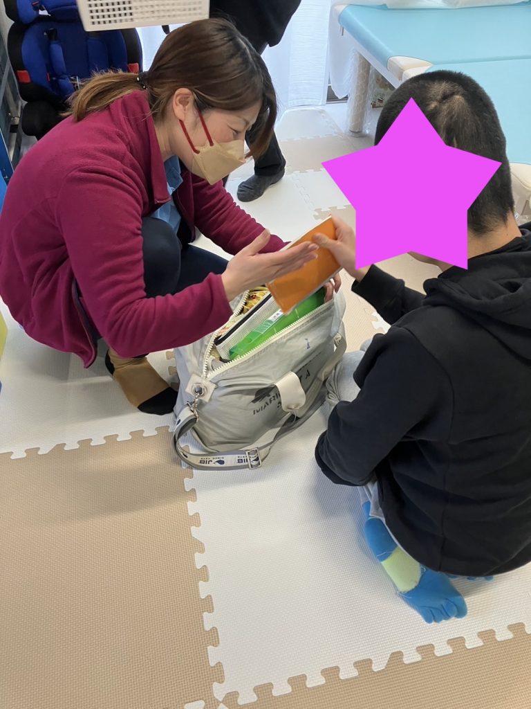 ウェルスマイルに到着して立つ練習を行った後に、毎回自分のバッグから必要なものを取り出すことを行っています。利用開始してから数ヶ月経ちますが、毎回ルーティンで行うことに関しては、やる事がわかっている様子で無理なく行ってくれます。トイレでの排泄行為も大変協力的です。生活の習慣化をしていく上で同じことを同じ環境で繰り返すことは重要です。放課後等デイサービスの役割として、日常生活の自立(できること)を増やすという事があります。何度も同じことを繰り返して、習慣化することは重要です。次のステップとしては、お子様に関わる関係機関が連携をして同じ動作を行うことがより強固な習慣化になると考えます。関係機関とは情報共有をしていきたいです。
