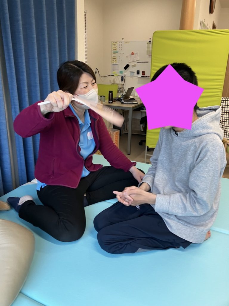 いつもベッドに乗るように誘導していますが、なかなかうまく誘導できませんでした。保護者様にもアドバイスを頂きながら実施していました。本日ベッドに上がってくれました。職員一同大変嬉しかった瞬間でした。